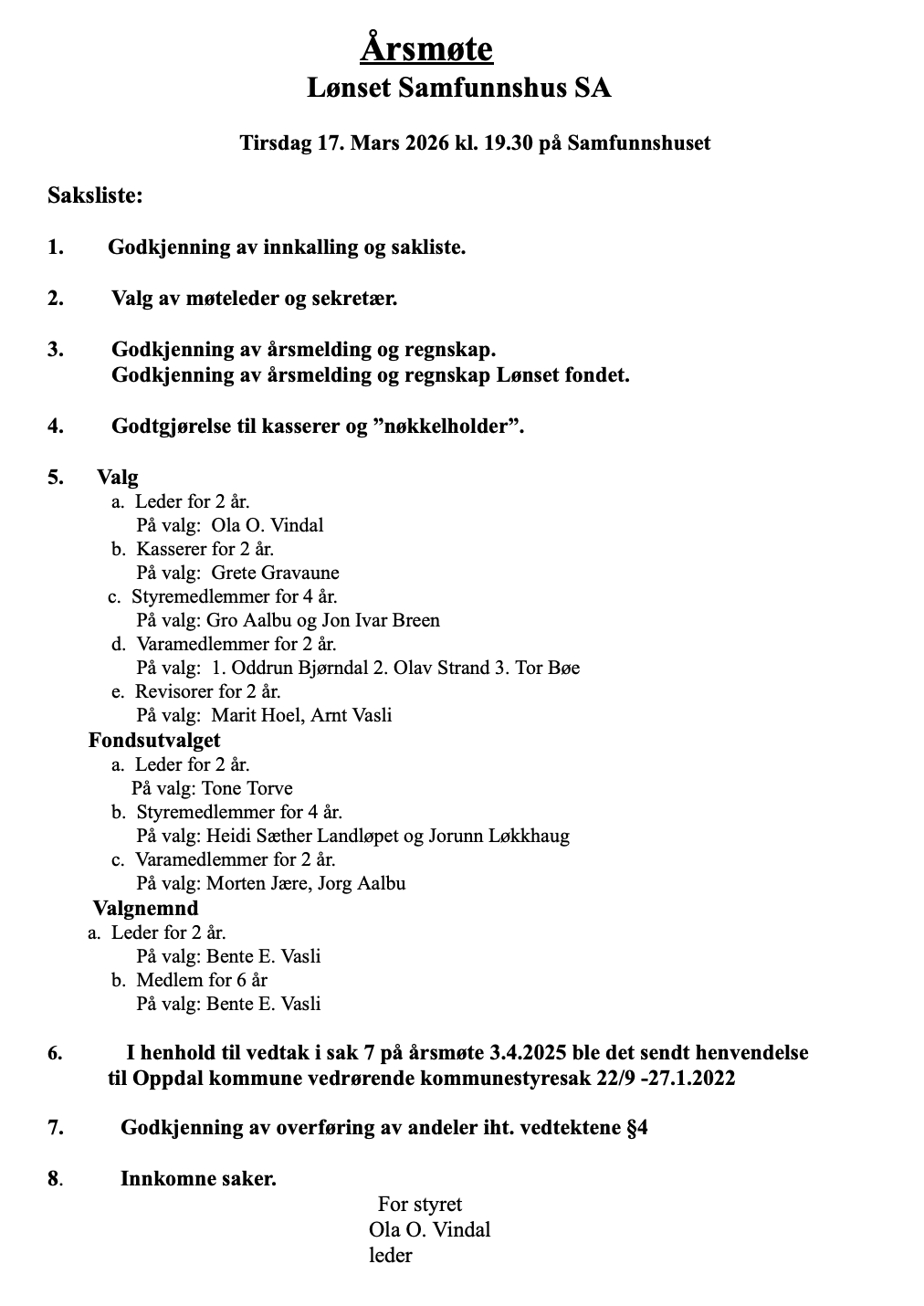 Årsmøte den 17. mars, kl.19.30 på Samfunnshuset